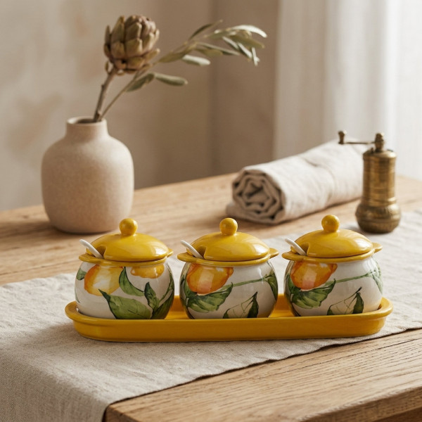 Porcelain Oil Dispenser & Salt Shaker Set - 4 Pcs